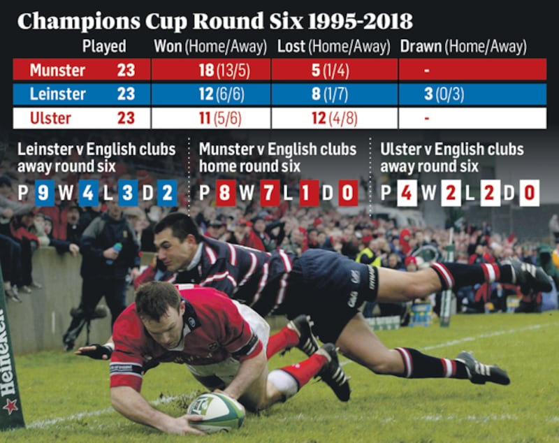 Aside from the Tigers’ defeat, the only one at home, the other four defeats in this specific fixture came in the first seven years of the tournament, away to Castres (twice), Toulouse and Pontypridd. In terms of the aforementioned parameters Munster’s record is comfortably the best of the Irish provinces with 18 wins and five defeats in 23 matches, albeit that 14 have taken place in Limerick.