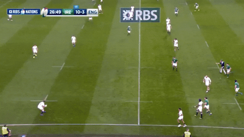 On 26 minutes Farrell, playing heads up rugby, put Daly into space with a brilliant chip over the defensive line (and he stayed alive to run a support line for the offload with the attack only stopped by Seanie O’Brien and Peter O’Mahony tackles while Johnny was first to the breakdown).