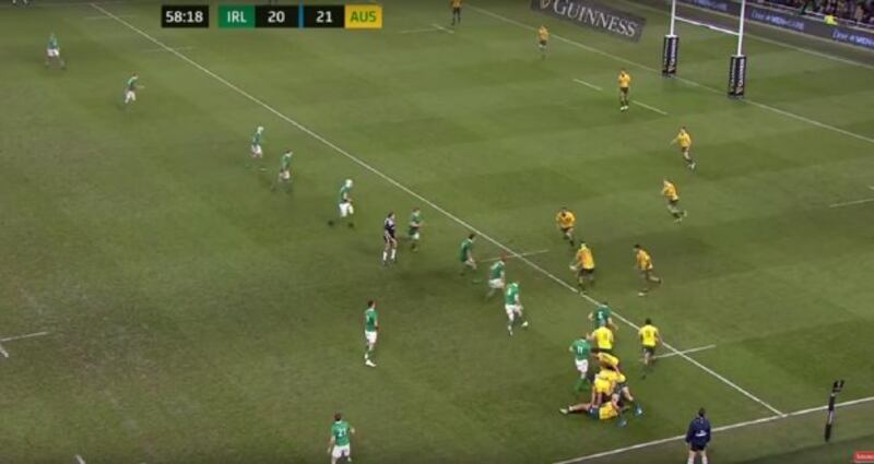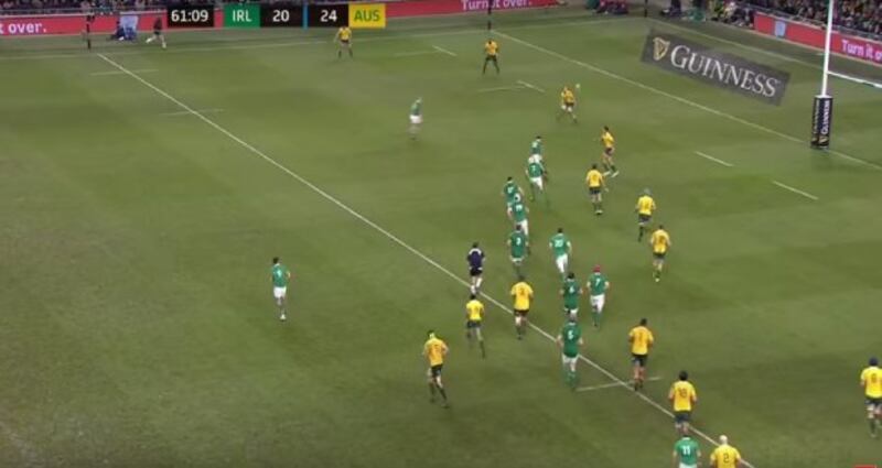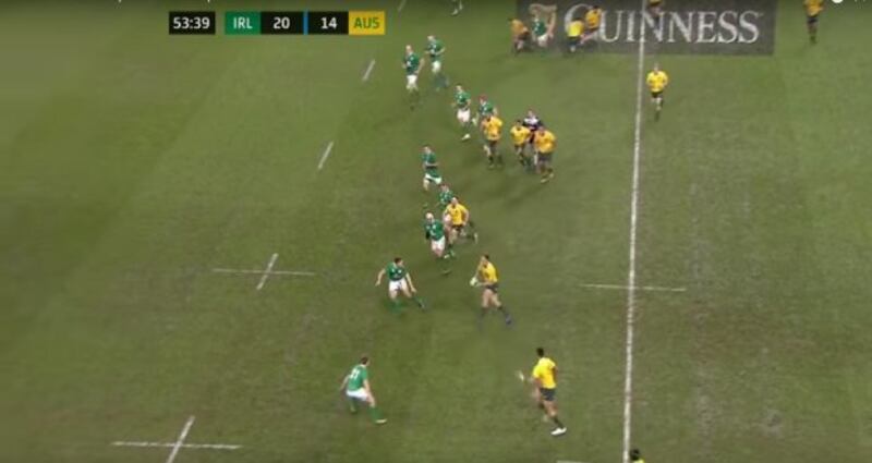 From the next kick off Australia found themselves in exactly the same position on their 22, near the left touchline. Away they went again but the difference in Irish line speed, at that crucial moment, played a huge role in this victory.