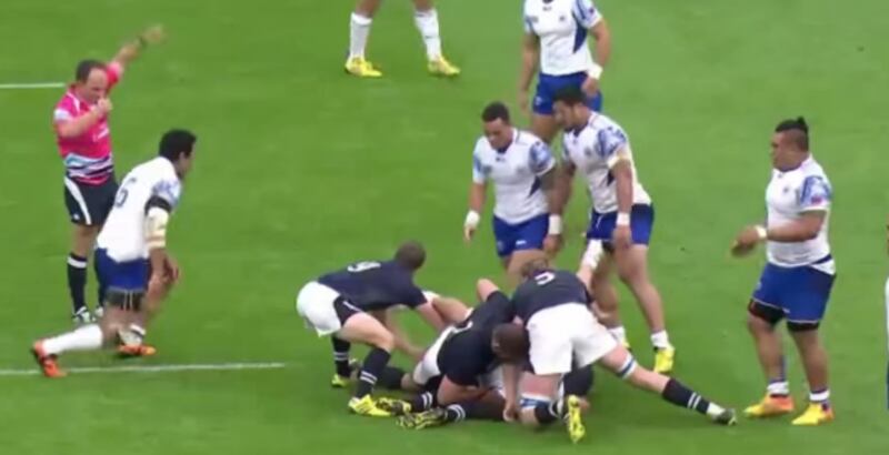During the World Cup Pool game between Scotland and Samoa, South African referee Jaco Peyper awarded a penalty against Ford and Gray after they appeared to twist Jack Lam above the horizontal as the flanker contested Scottish possession.