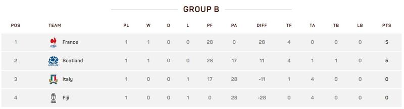 Scotland 13-8 France 4-9 Draw 20-1 (France -6 10-11)