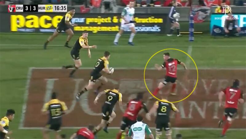 Crotty showed the defensive intellect to deny the easy pass without committing to tackling either Barrett.