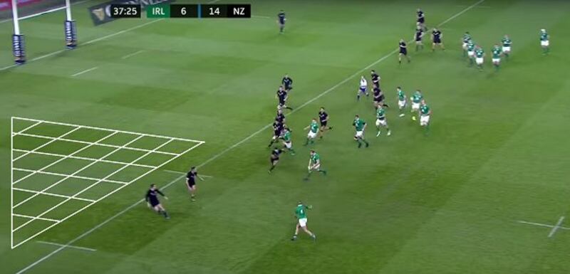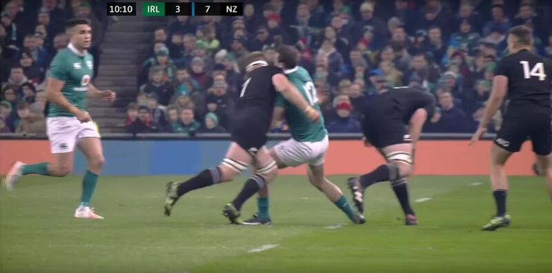 From the kick-off New Zealand unloaded a ferocious power game that within 2 minutes 40 seconds saw Barrett out-manoeuvring a solid Irish defence.