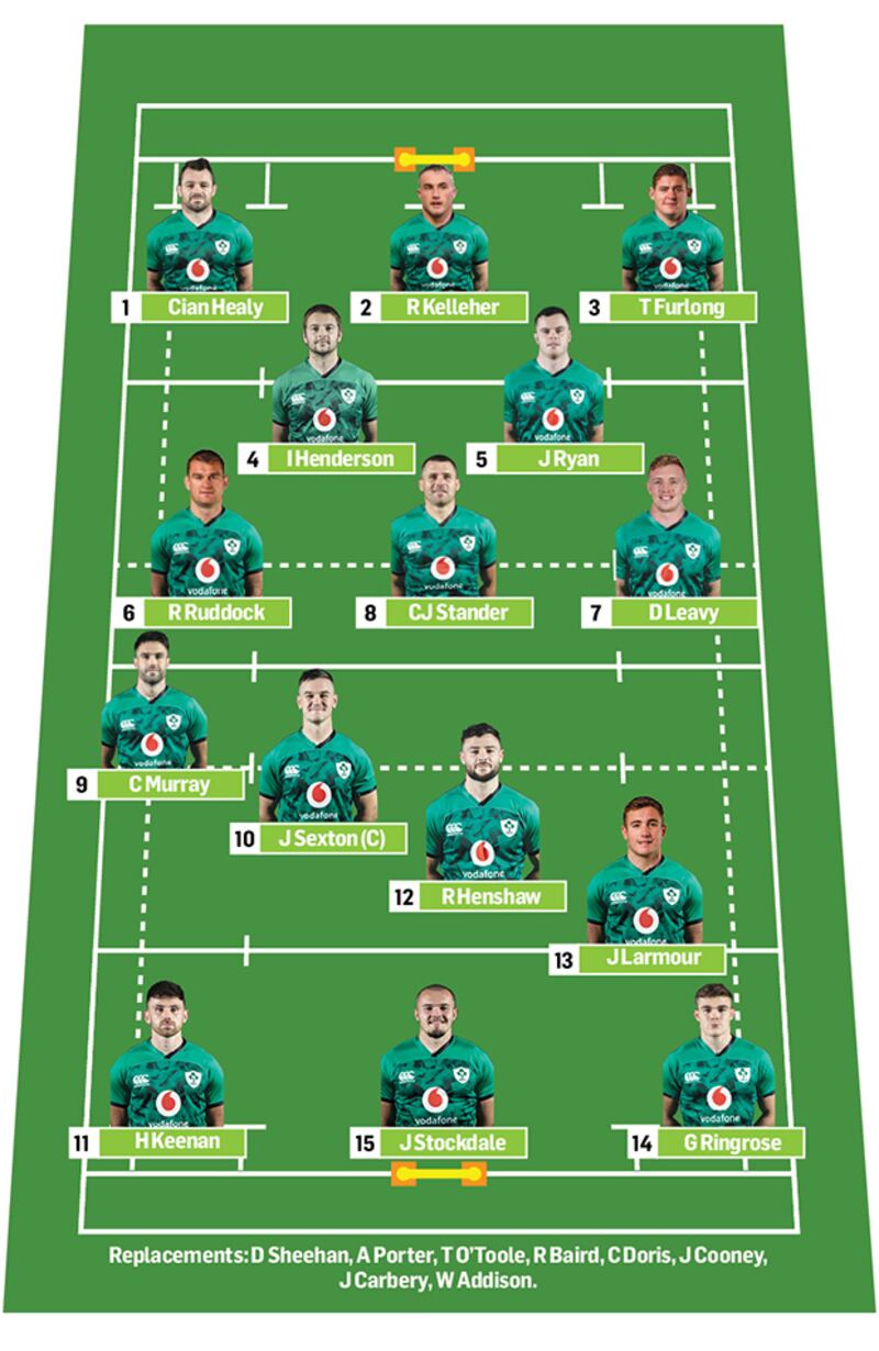John O'Sullivan's Ireland team for 2021 Six Nations: Jacob Stockdale; Garry Ringrose, Jordan Larmour, Robbie Henshaw, Hugo Keenan; Johnny Sexton, Conor Murray; Cian Healy, Ronan Kelleher, Tadhg Furlong; Iain Henderson, James Ryan; Rhys Ruddock, Dan Leavy, CJ Stander. Replacements: Dan Sheehan, Andrew Porter, Tom O'Toole, Ryan Baird, Caelan Doris, John Cooney, Joey Carbery, Will Addison.