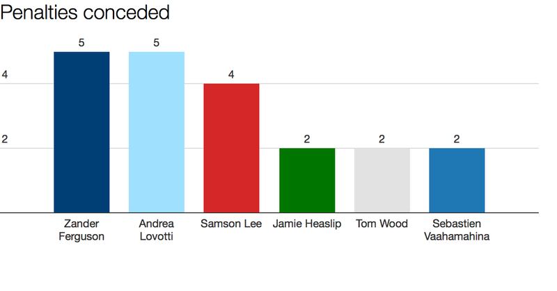 And leading the way for penalties conceded are Scotland prop Zander Ferguson and Italian prop Andrea Lovotti. Granted, Scotland got a hammering in the scrum against France and Italy didn’t fare much better against Wales - but it goes someway to highlighting the set-piece pressure applied by the Irish pack.