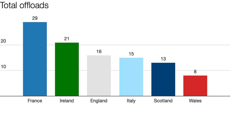 Their 29 team offloads is comfortably the tournament’s highest - with Ireland second with 21. Wales meanwhile have managed only eight.