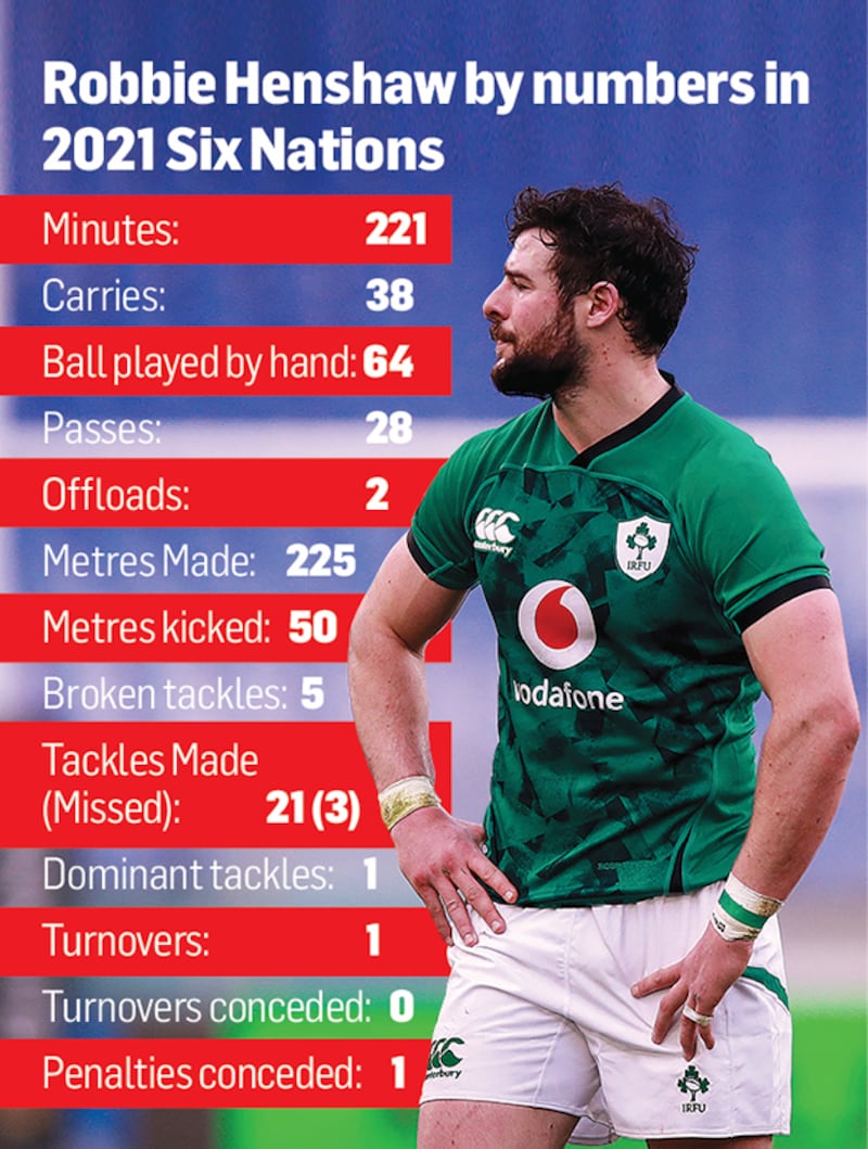 In highlighting Ireland’s standout performer to date in this Six Nations, Henshaw would be in the running – he’s been in the tournament’s team of the week in French and British papers more than once – and the immediate challenge is to maintain those performance levels.