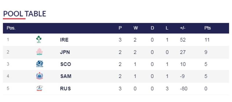However, Ireland are also in control of their own destiny. One more victory - against Samoa on Saturday October 12th - guarantees a place in the last eight.