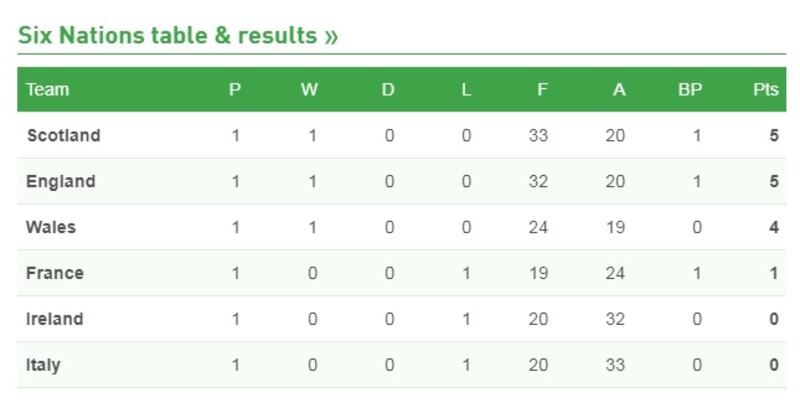 Scotland currently hold top spot by the slimmest of margins - they have five points, four for the win and one bonus point, and a points difference of 13. England’s points difference of 12 relegates them to second, with Wales third on four points overall. The French are fourth on one point, Ireland fifth on zero with Italy propping up the table.