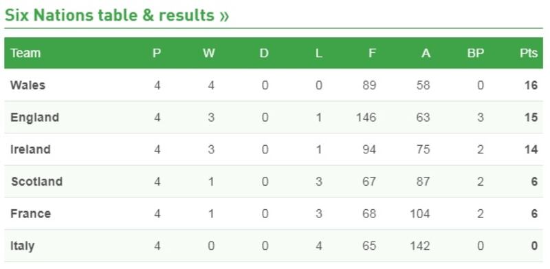 An opening weekend defeat to England meant Ireland’s hopes of winning the Six Nations were always going to be slim, something compounded by a failure to secure a bonus point away to Scotland. They currently sit in third place on 14 points, meaning an improbable bonus point win away to Wales would leave them on 19. England have 15 points and are likely to beat Scotland with a bonus point - so Ireland’s total of 19 wouldn’t be enough. Should England beat Scotland without a bonus point, they would still be likely to win the tournament ahead of Ireland on points difference - England’s is +83, Ireland’s is +19. If Ireland beat Wales and Scotland beat England, the Championship is almost guaranteed to be Ireland’s.