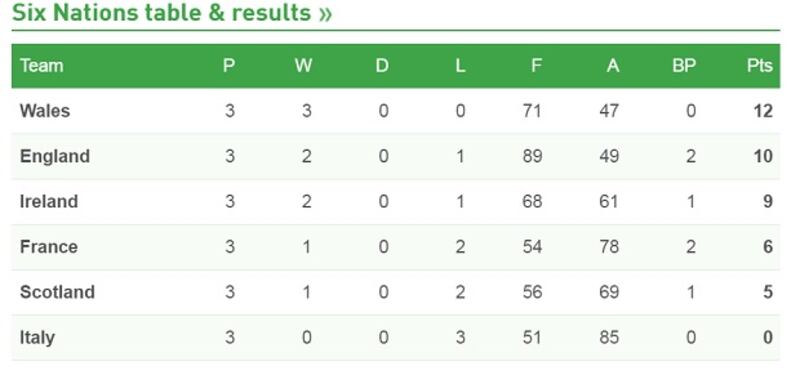 Saturday February 2nd: Ireland 20 England 32