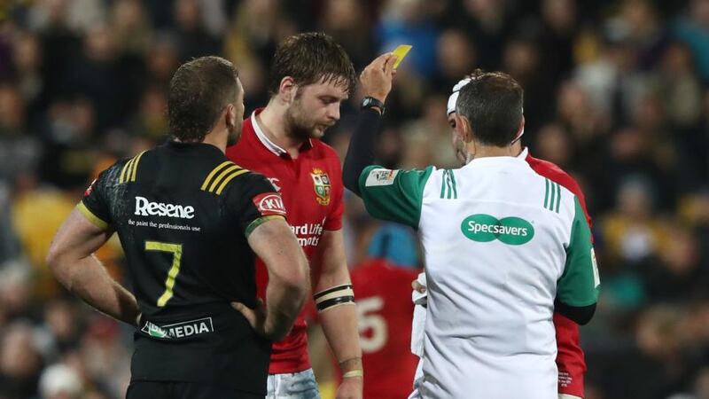 The television match official, George Ayoub, didn't intervene then but was happy to suggest to Poite he reconsider his original assessment of the Henderson yellow card. The French official watched a number of replays and then indicated to the TMO that he was happy to run with the original penalty to the Lions. Ayoub invited Poite to watch another replay.