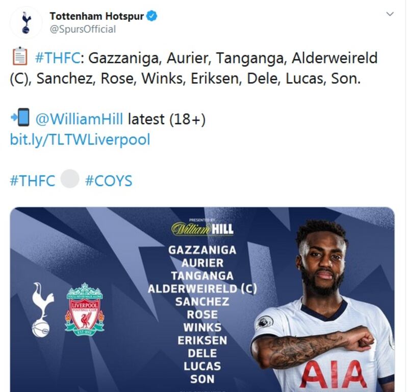 Another recent development has been Tottenham Hotspur’s team announcements on Twitter which are now not only sponsored by William Hill but also include a link to the online market to bet on the match with a cursory “(18+)” at the end of the tweet.