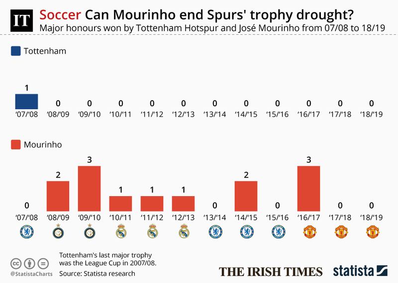 Mourinho has won 25 senior trophies, including a domestic title in a record four different countries. That is in stark contrast to Pochettino, who has yet to win a trophy in his managerial career despite overseeing Tottenham’s transformation into a side which has qualified for the Champions League for the last four seasons.