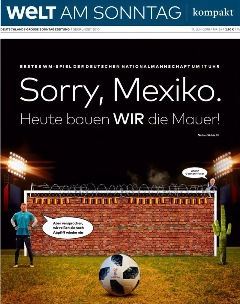 The most morto of all the German papers? Possibly Welt am Sonntag after their pre-match front page: “Sorry Mexico, today WE build a wall.” Ooops.