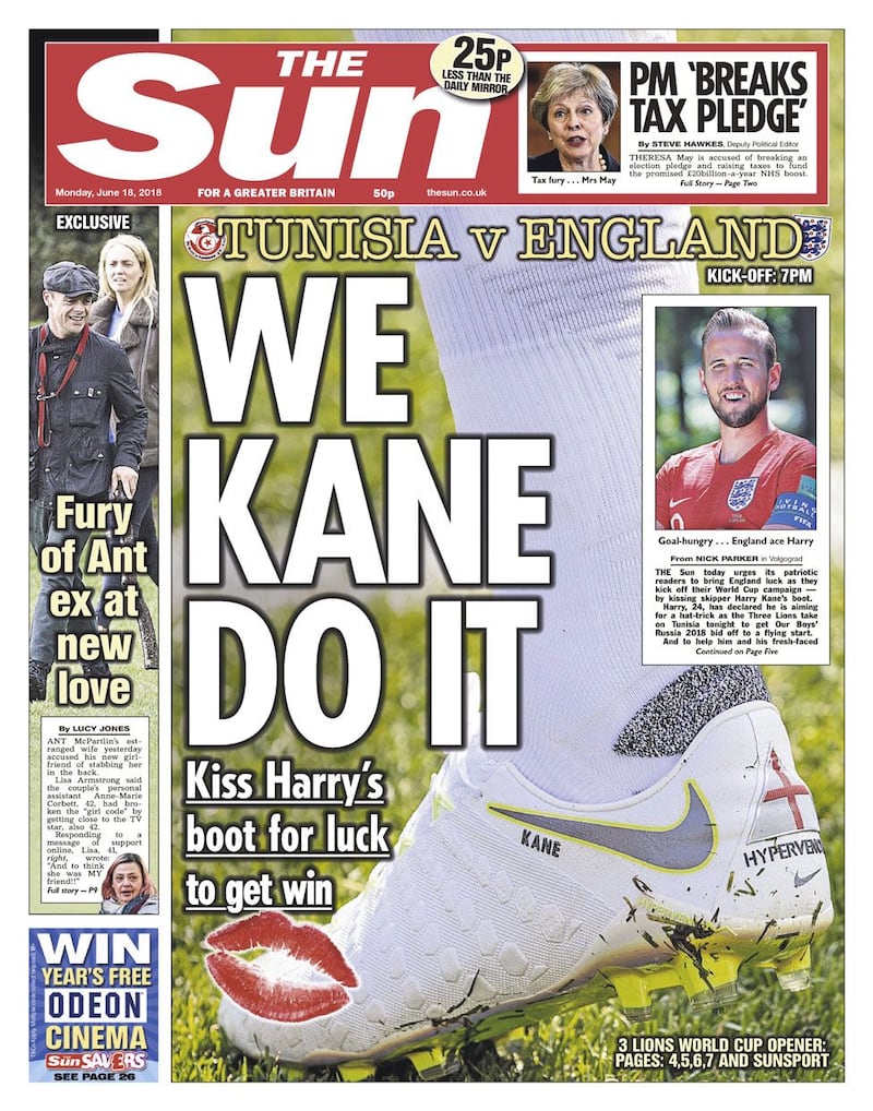 Yes, you’re reading that right: The Sun actually asked its readers to place their lips on Monday’s front page and ‘Kiss Harry’s Boot For Luck To Get Win’. That was a whole bunch of soggy front pages.