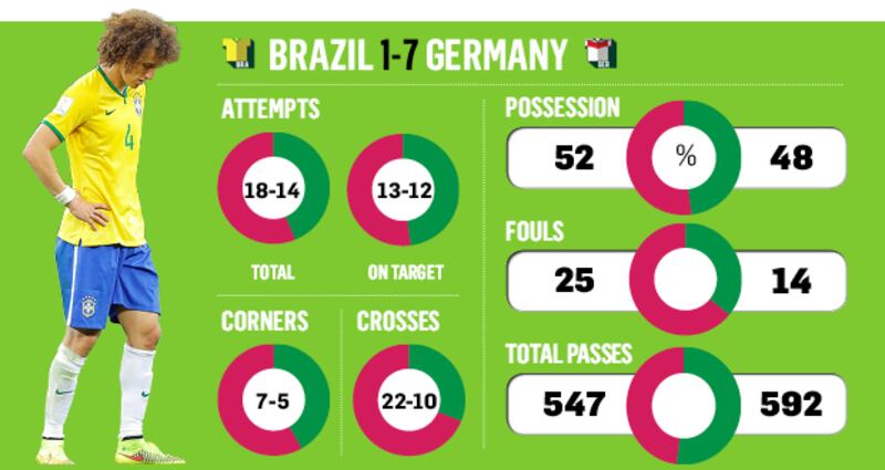 No team in World Cup history had ever been five goals up by that stage of a game and the idea of Brazil being the ones to be five down would, for all their flaws, have seemed utterly outlandish had anyone ever thought of raising it as a possibility beforehand. Still, as the goals flew in one after the other - numbers two, three and four within three minutes of each other - that is precisely what the home support had to come to terms with.